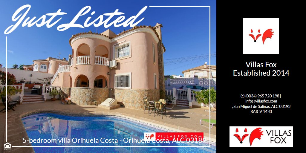 Presenting a delightful 5-bedroom property in the Blue Lagoon area of San Miguel de Salinas/Orihuela Costa (yes, it´s right on the border, but techically it´s in Orihuela Costa!), close to amenities and only a short 10 minute drive to the beaches. Offering 2 floors each with their own lounge and kitchen, with no internal staircase, so perfect for guest accommodation to be separate from the rest of the house. The upper level has 3 bedrooms and 2 bathrooms (one of which is en-suite to the main bedroom), and the lower level has 2 bedrooms, an office and 2 bathrooms (again, one of which is en-suite). There is an additional WC adjacent to the lower terrace, ideal for pool users who don´t need to enter the house! Both levels have their own semi-circular terrace with plenty of room to relax, plus there is a large private solarium with magnificent views on the top, accessed via an external stairway. There is a barbecue area to the south side of the home, storage area and laundry room. Of course the main attraction is the swimming pool, which has recently been measured to have a total surface area of 29.40 m2, and where you will undoubtedly make lots of happy memories splashing around for a large part of the year thanks to our wonderful climate! There is off-road parking for 2 cars, but street parking is readily available. We have provided a 360º virtual tour and also a video to help you get to know every inch of this property before you even view it in person, which we highly recommend, because no amount of photos and videos can truly do it justice. If you´re looking for a large family home in the sun, in a great location, then this one is surely hard to beat! Available exclusively from Villas Fox, so call us directly today to avoid disappointment.